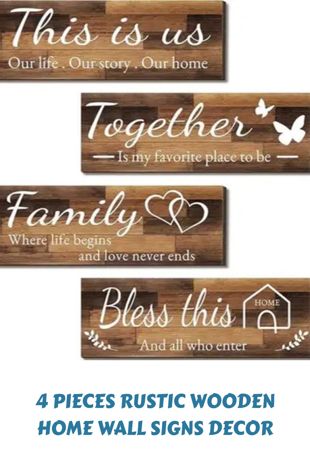 4 Pieces Rustic Wooden Home Wall Signs Decor