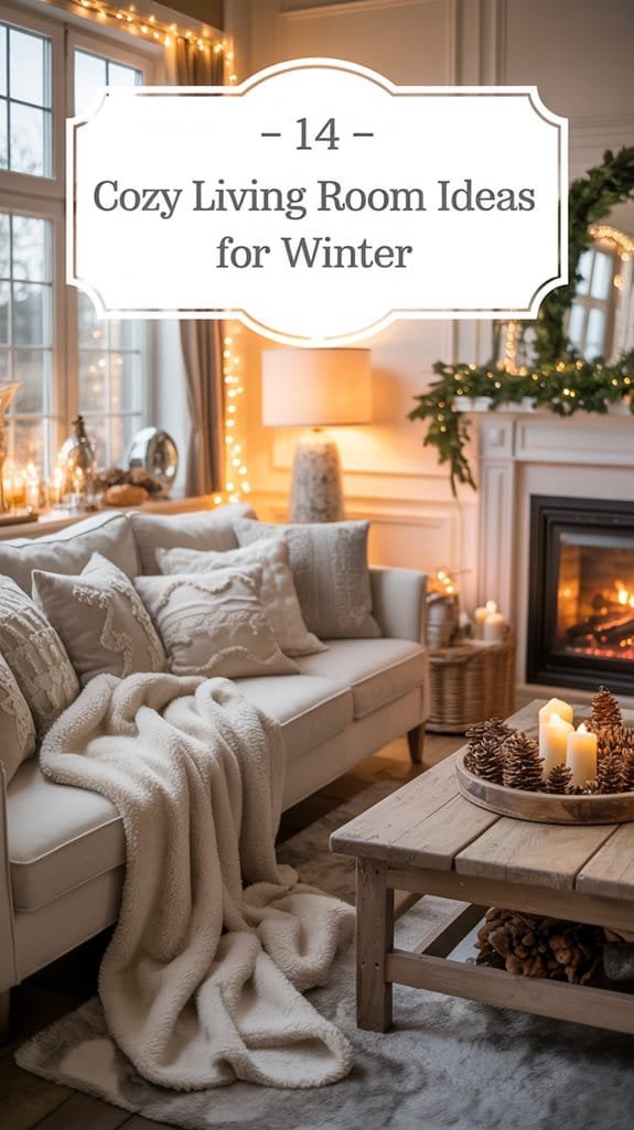 As winter blankets the world in its chilly embrace, your living room can transform into a warm haven that invites you to unwind. Imagine snuggling up with a soft throw, surrounded by earthy tones that evoke the beauty of the season. You might be wondering how to create such a cozy retreat. Let’s explore 14 ideas that will turn your space into a comforting winter escape, perfect for gatherings or quiet evenings by the fire.