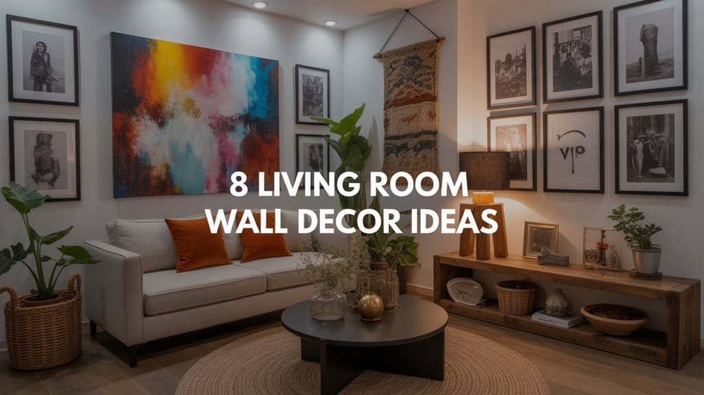 Your living room walls can tell your story through gallery walls showcasing cherished memories, bold paint colors that reshape the room’s mood, and textured wallpaper adding dimension. Consider floating shelves for personal displays, large-scale artwork as striking focal points, and mirrors reflecting light beautifully. Wall decals offer budget-friendly creativity, while textured panels create visual depth and conversation. Each option transforms your space into a sanctuary reflecting your unique personality and style—discover which combinations speak to you.