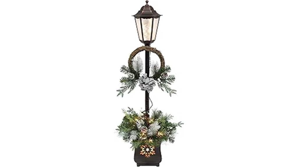 These charming fixtures, often adorned with ribbons, garlands, and twinkling lights, stand tall against the backdrop of snowy landscapes. They evoke a sense of nostalgia with their old-fashioned design, casting a warm glow that enhances the holiday spirit.
