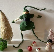 1 Vintage Christmas Elves Pixies Pipe Cleaner Peanut Body Floral Pick Handmade