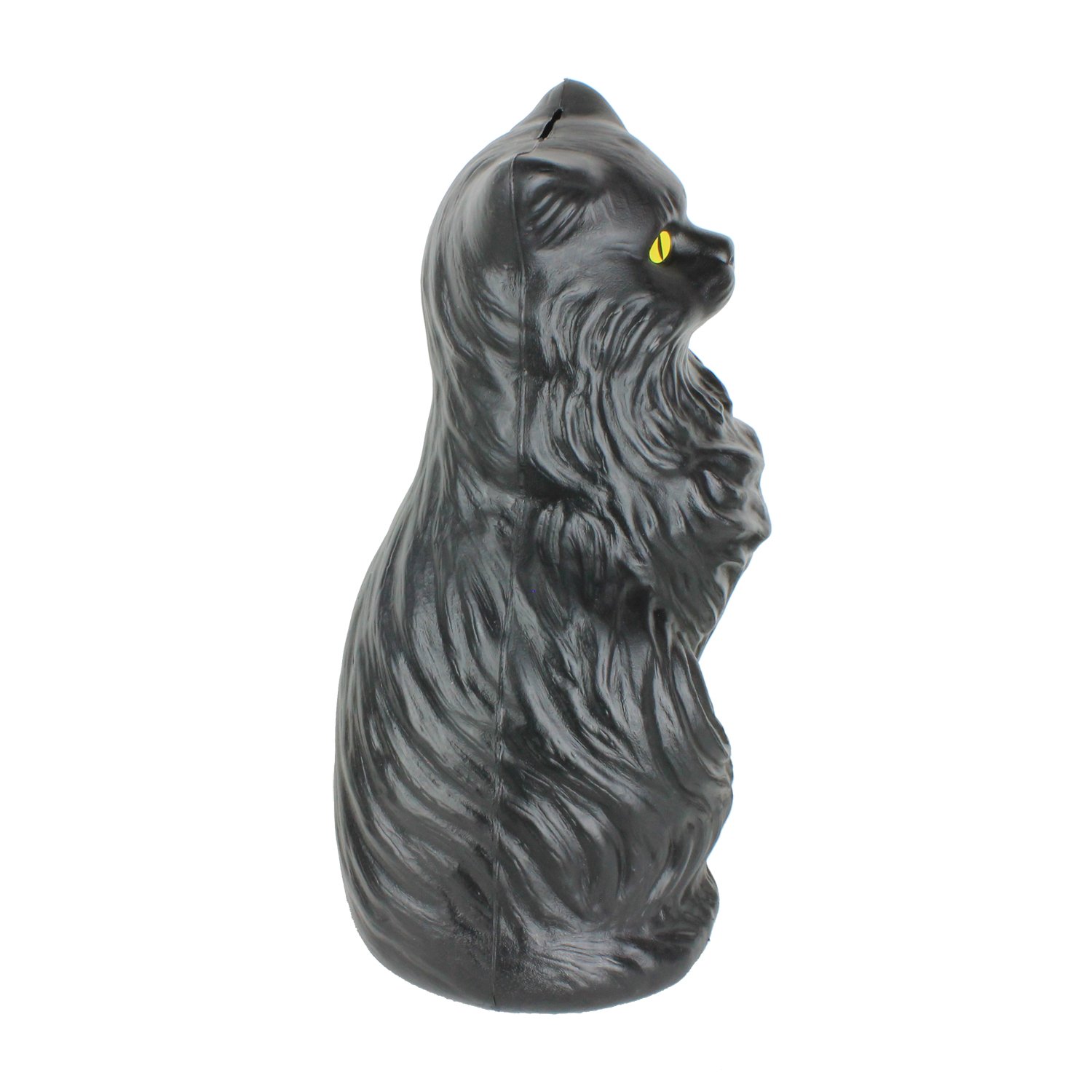 - 17-inch black Halloween cat bank with striking yellow eyes