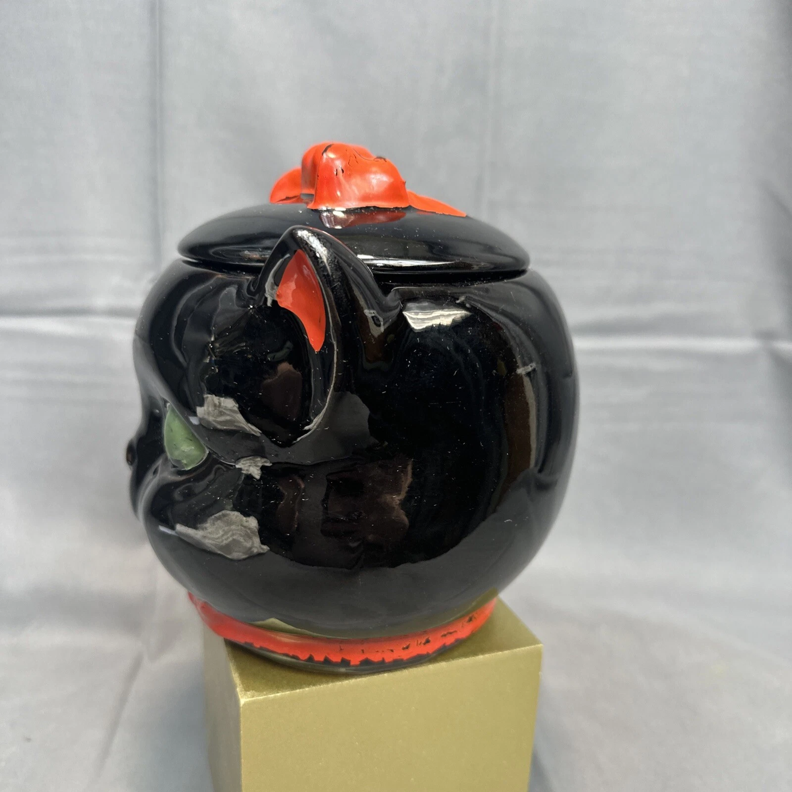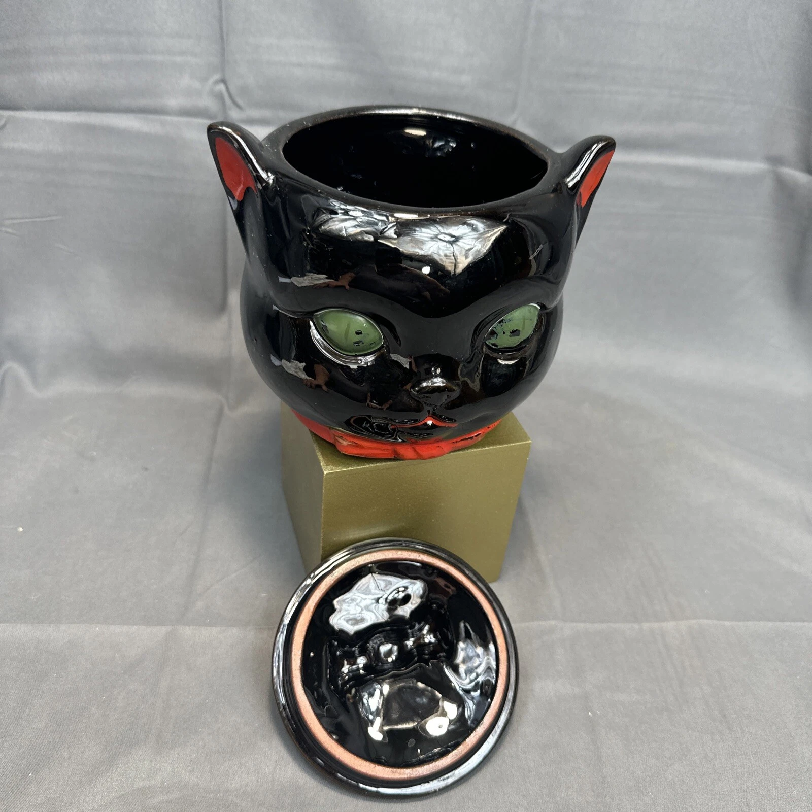- Vintage 1950’s SHAFFORD Black Cat Cookie Jar with green eyes