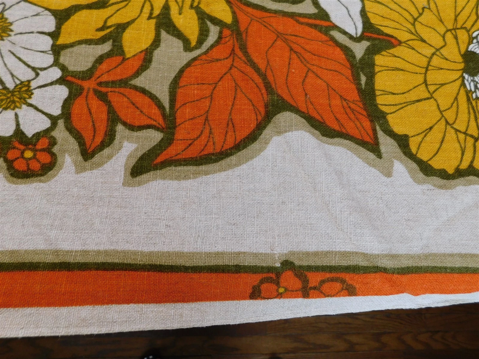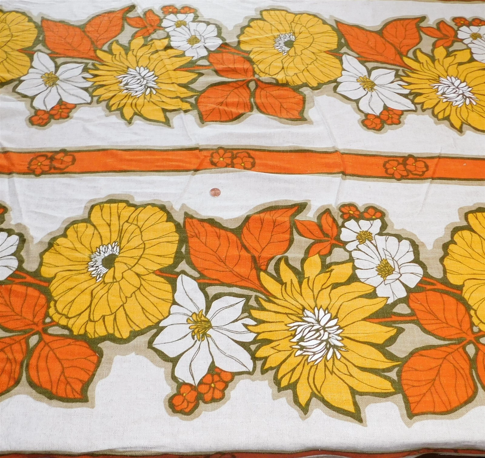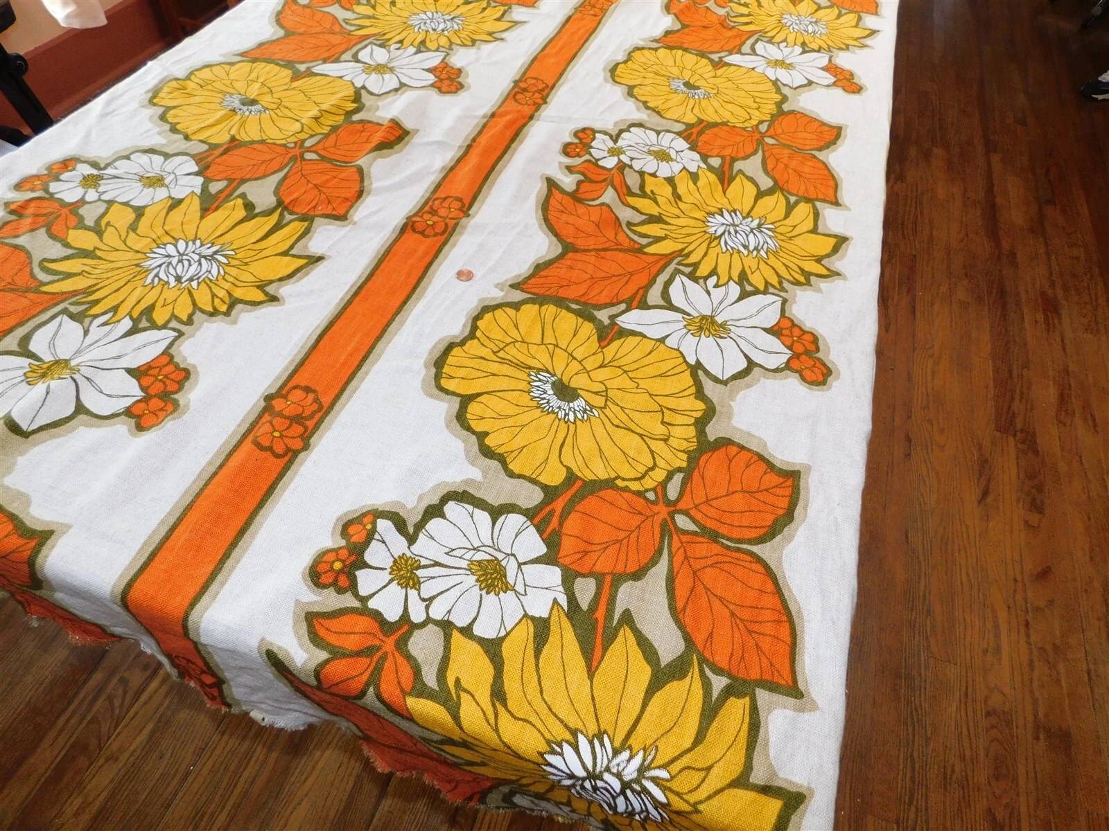Vtg 1970s Bold Floral Print Orange Yellow Gold MOD Curtain Home Decor Fabric BTY