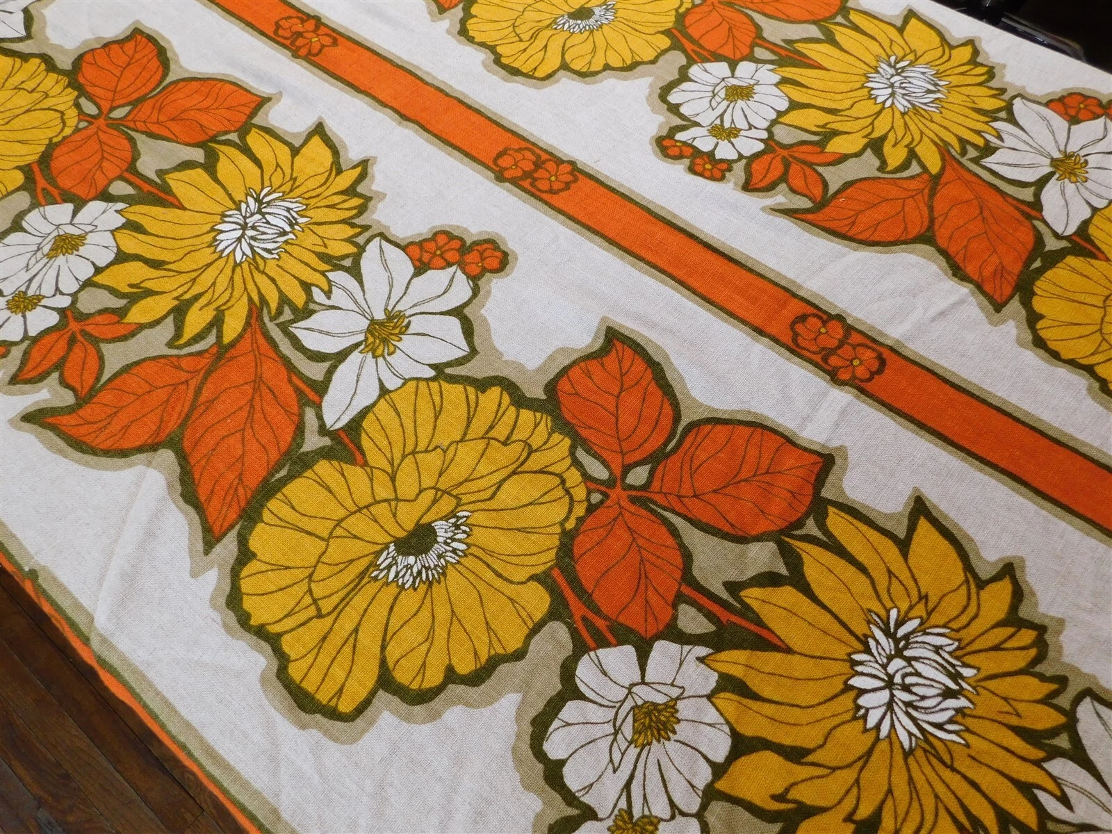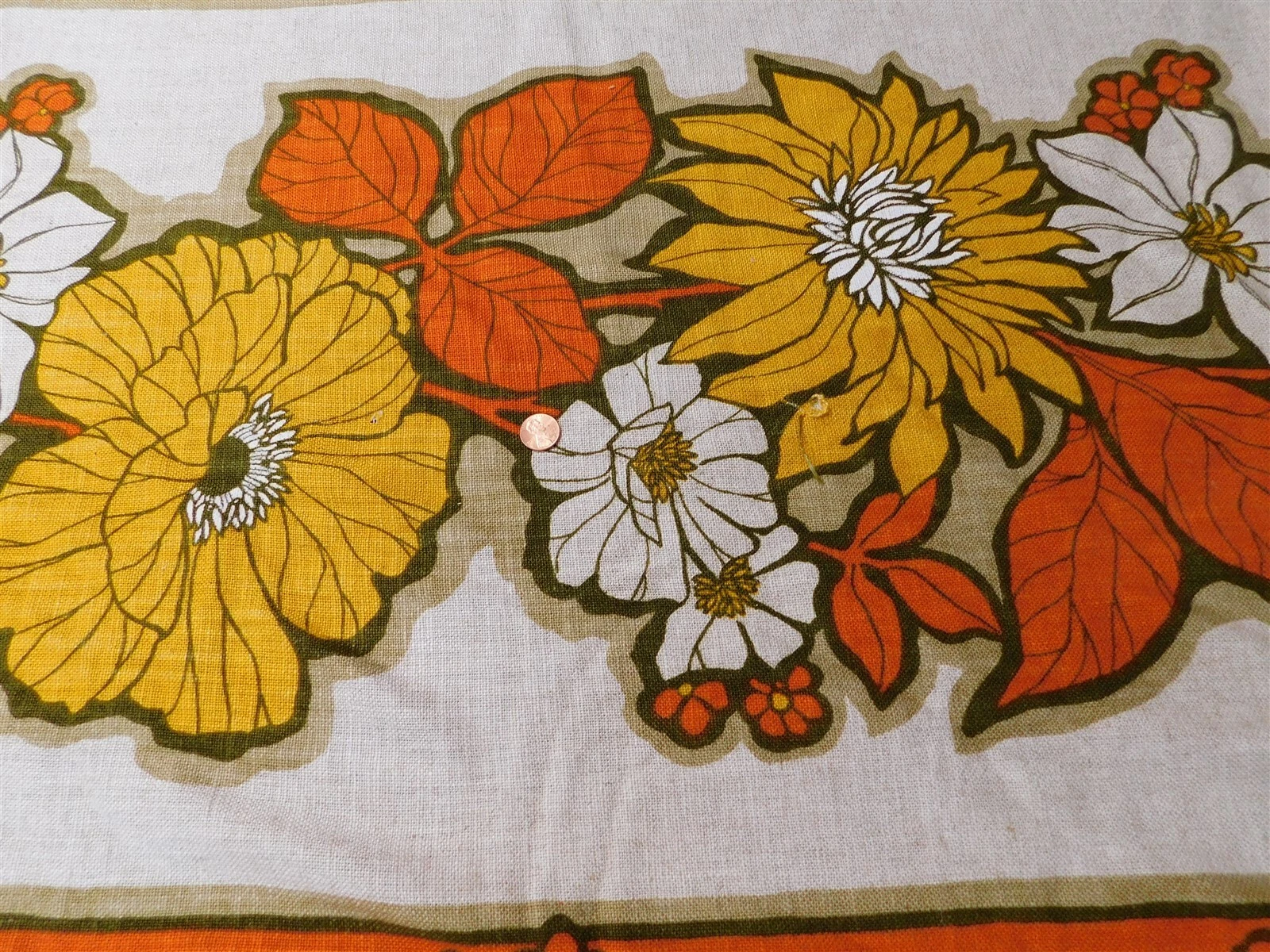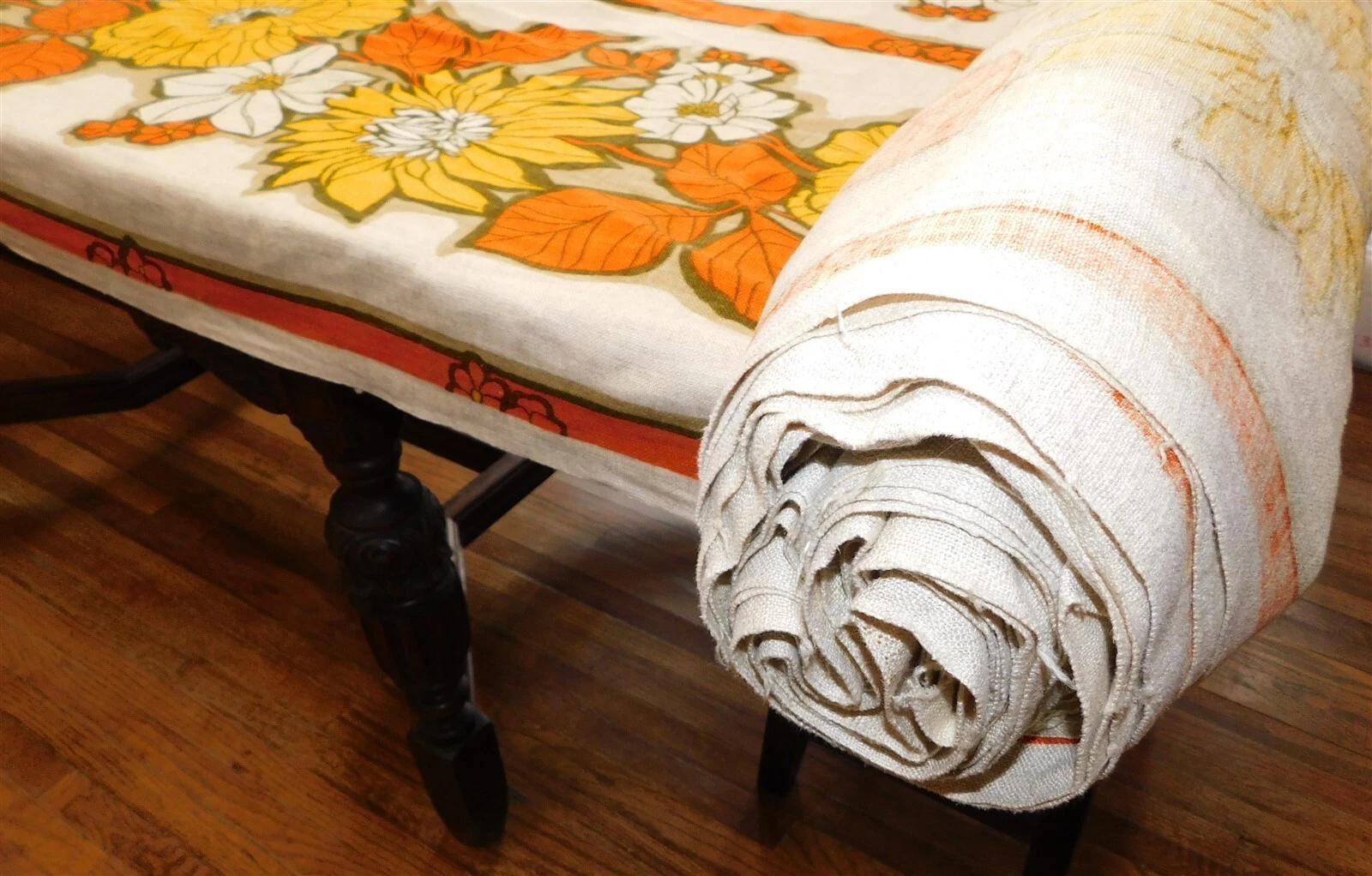 Transform your living space with this stunning vintage fabric from the 1970s! This bold floral print features vibrant shades of orange, yellow, and gold, capturing the essence of the MOD era. Perfect for creating eye-catching curtains, upholstery, or other home decor projects, this fabric is sure to add a burst of color and personality to any room.