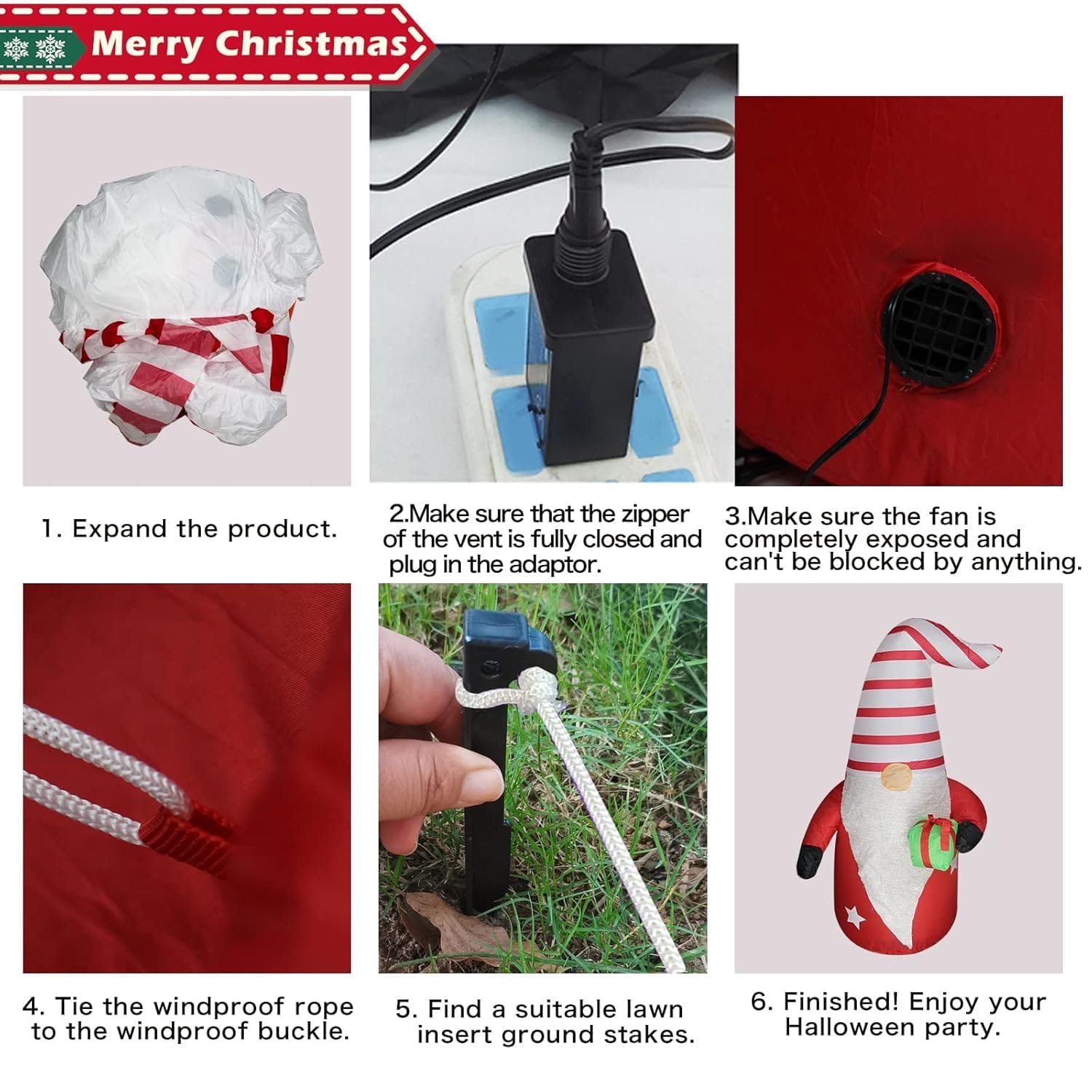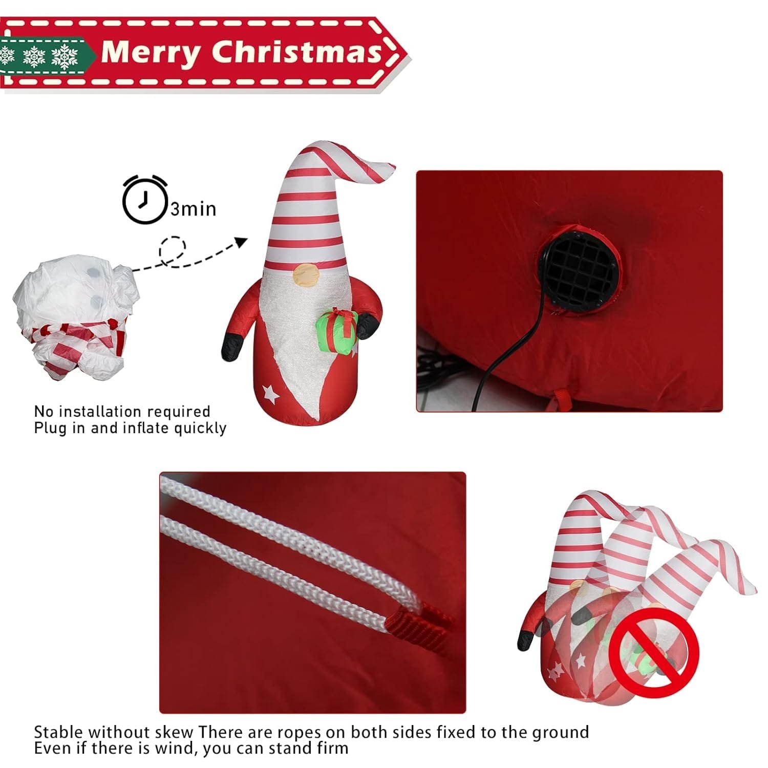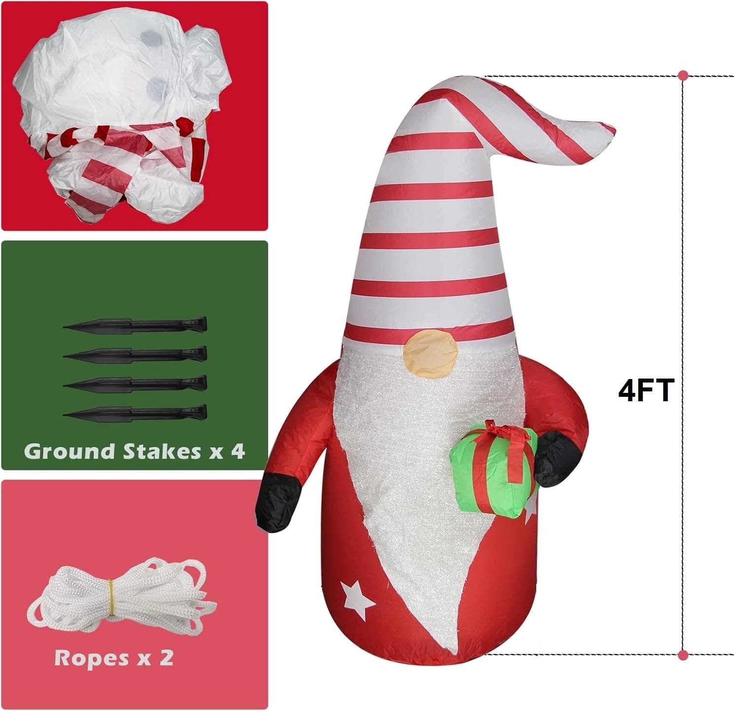 - Eye-Catching Design: Standing at 4 feet tall, this inflatable gnome features a vibrant multicolor design that captures the magic of the holiday season.