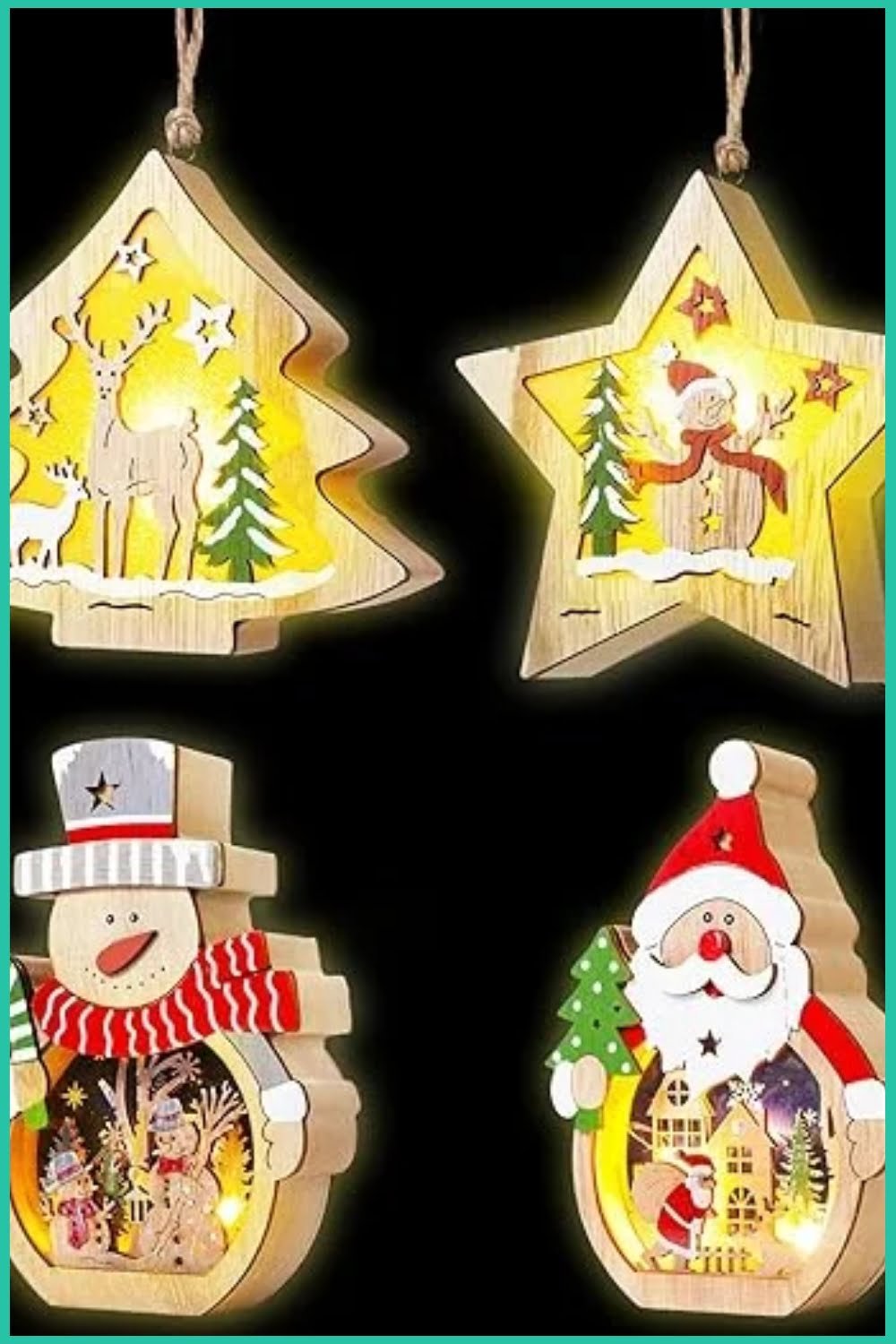 4 Pcs LED Light Up Christmas Wooden Ornaments