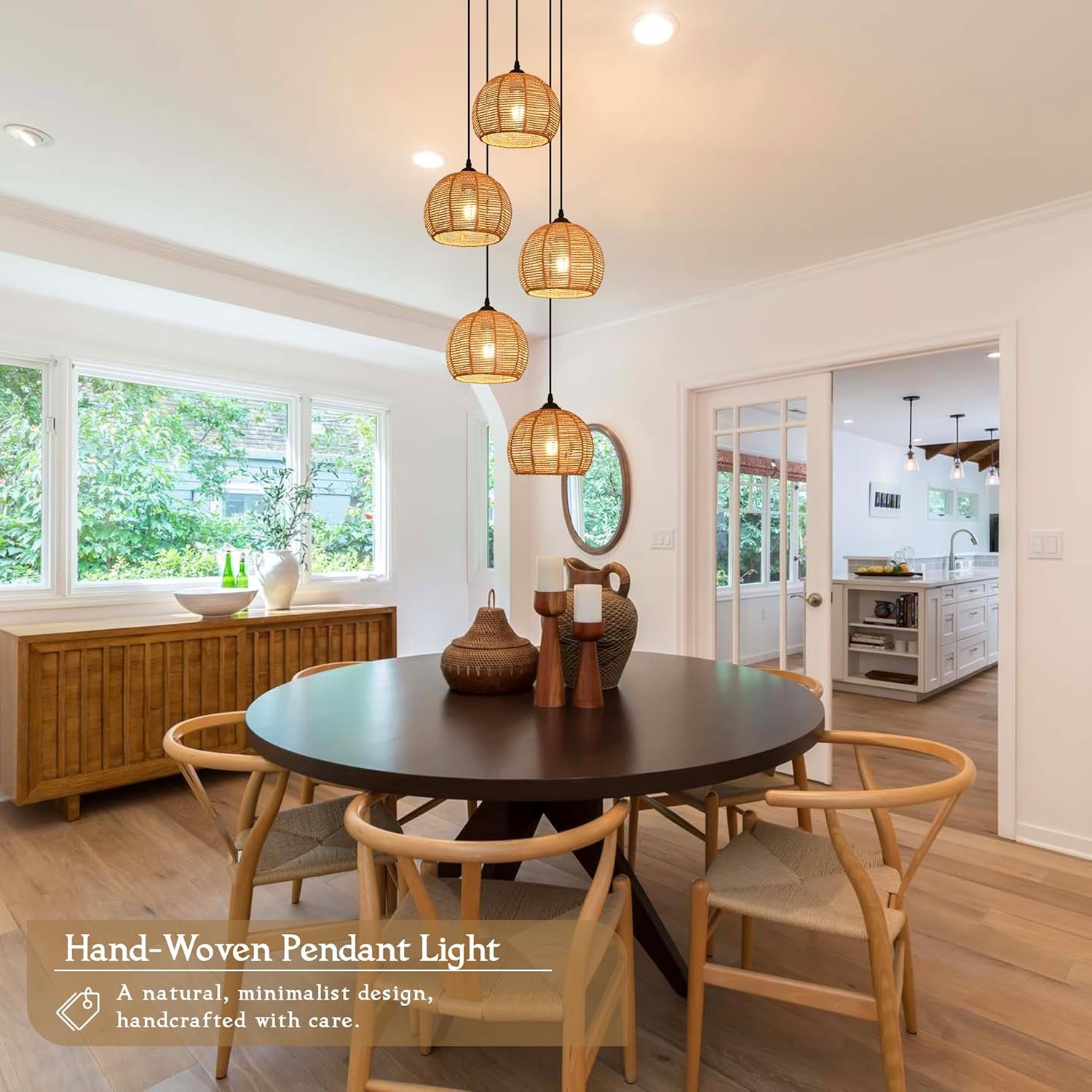 Transform your home with our 5-Light Woven Foyer Chandeliers! Perfect for high ceilings, this stunning boho rattan pendant light adds a rustic touch to your living room, hallway, or staircase.