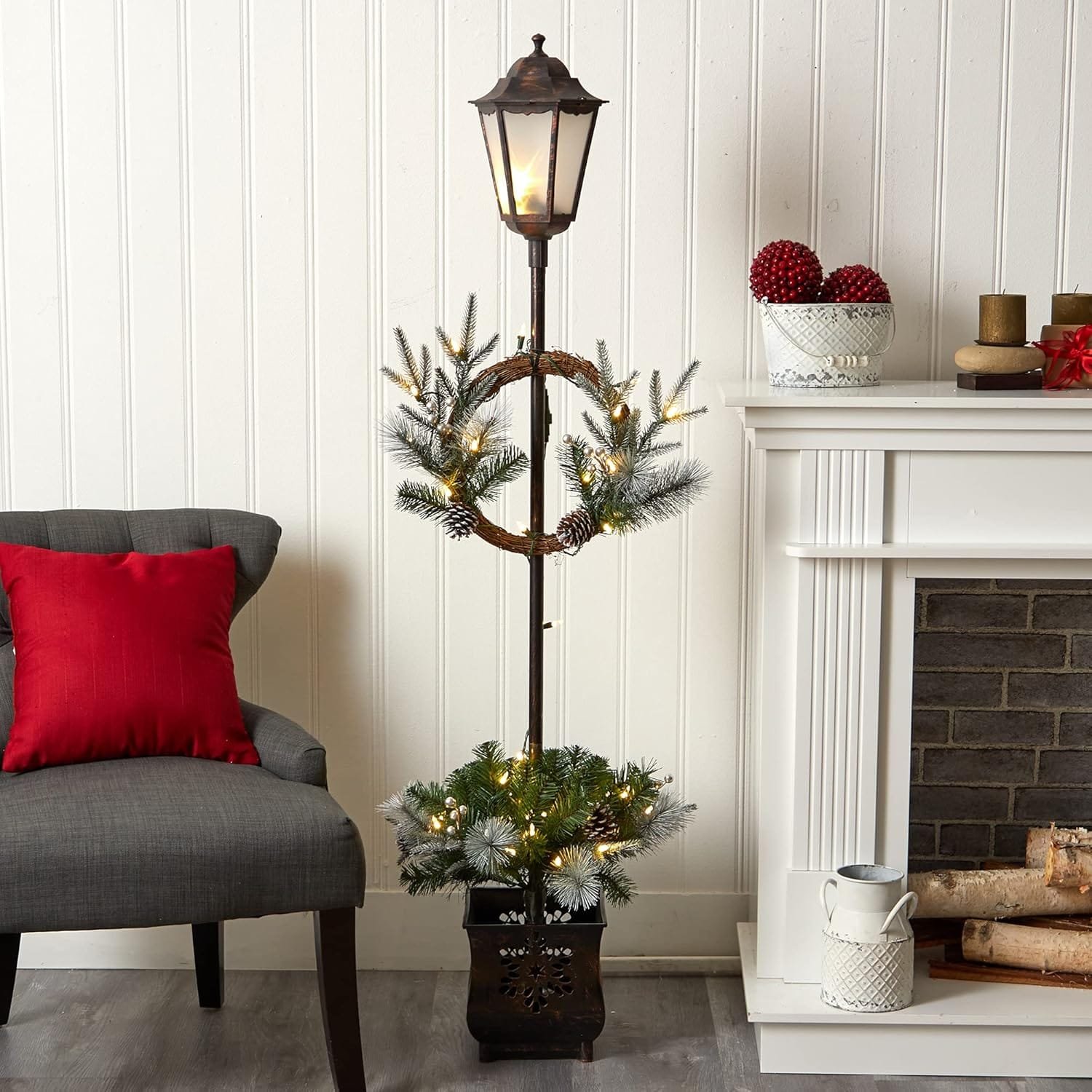 Nearly Natural 5ft. Holiday Pre-lit Decorated Lamp Post
