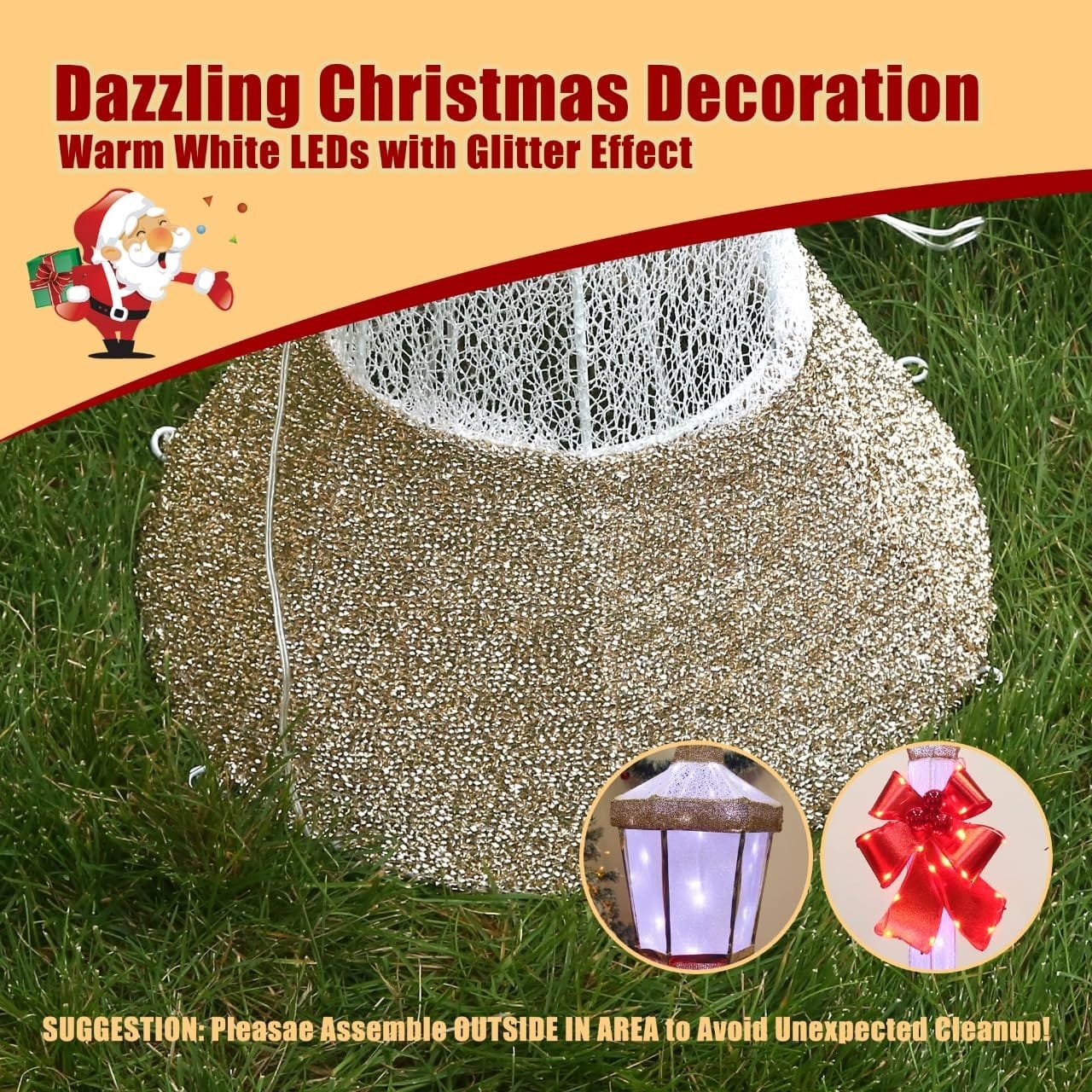 - Festive Aesthetic: Adorned with glitter fabric for a dazzling glow, enhancing the holiday atmosphere in any outdoor setting.