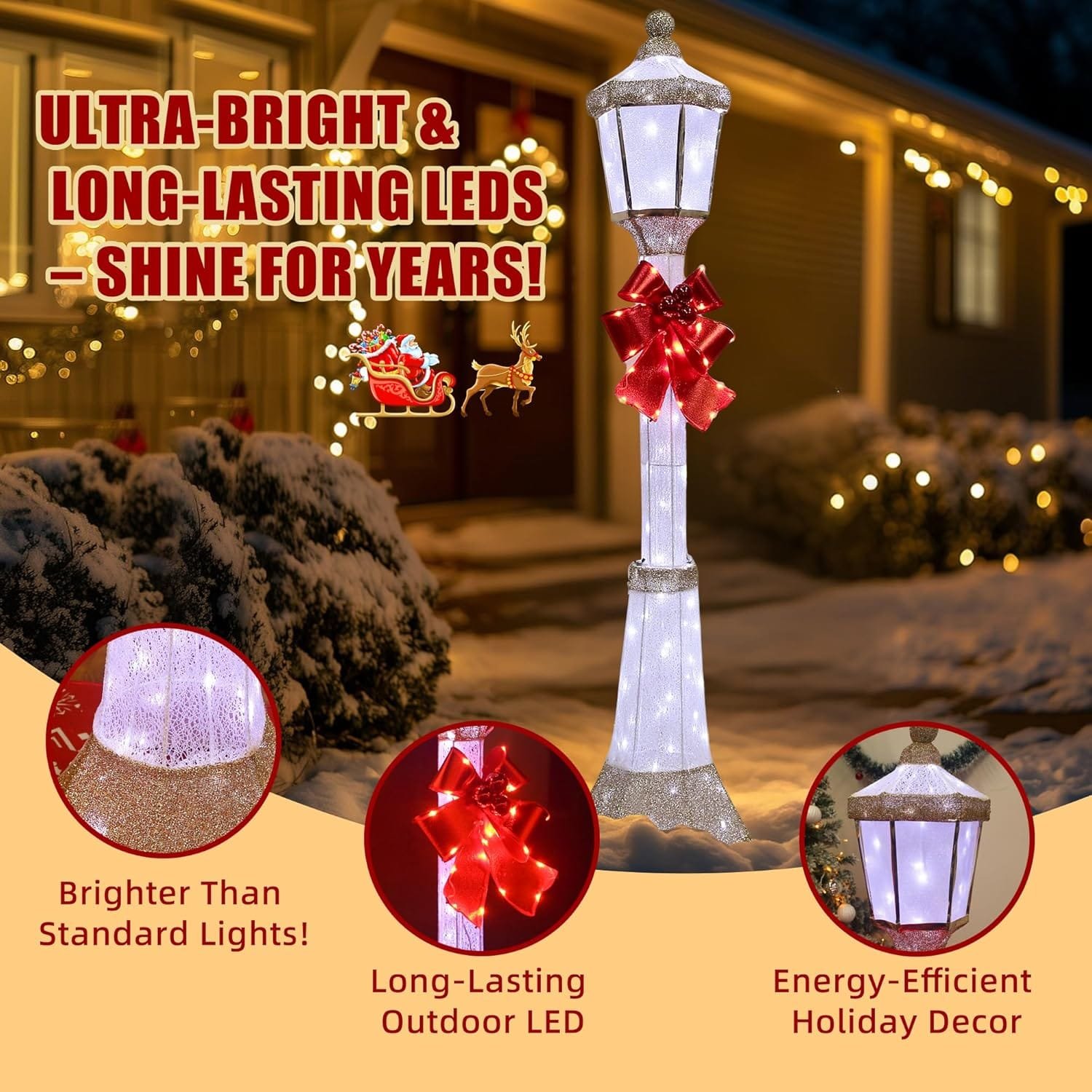 - Festive Bow Included: Complete your holiday decor with the included festive bow that enhances the lamppost’s charm.
