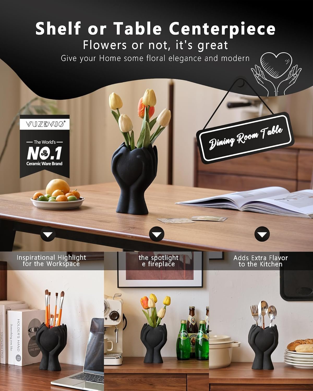 Transform your living spaces with the unique VUZDVGO Heart Hand Black Ceramic Vase! Perfect for any décor, this stunning vase not only enhances your home but also symbolizes the beautiful bond of love. Whether you’re looking to elevate your office, bedroom, or kitchen, or searching for the ideal gift for a wedding or special occasion, this vase is the perfect choice.