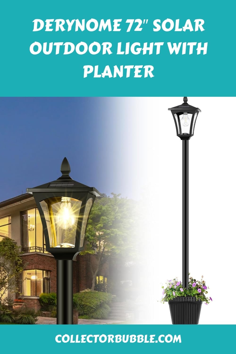 Illuminate your outdoor spaces with the Derynome 72 Solar Outdoor Light—a perfect blend of functionality and elegance. This stunning antique-style post lamp not only lights up your garden, pathway, or patio but also features a built-in planter to add a touch of nature to your decor.
