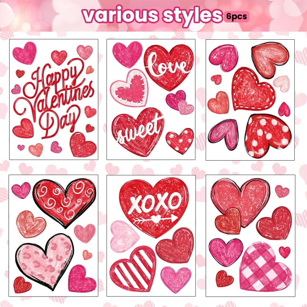 - Valuable Package: Includes 6 sheets of Valentine’s Day window stickers with a total of 49 pieces, featuring 1 “Happy Valentine’s Day” sticker and 48 colorful hearts in various sizes.