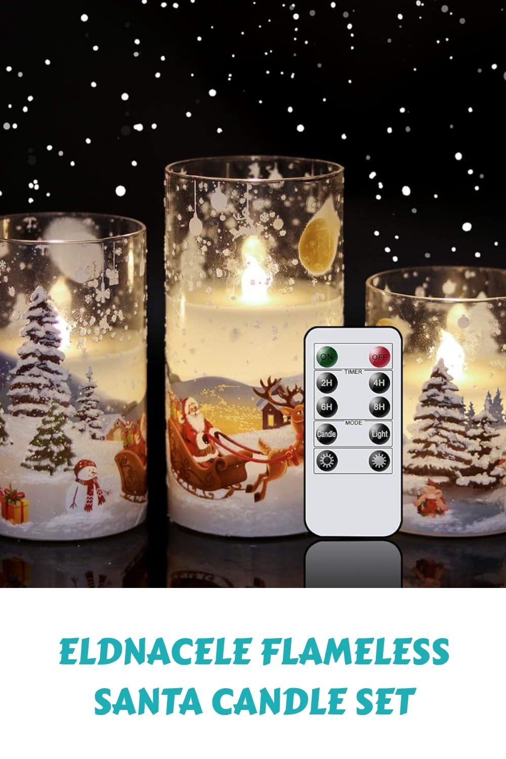 Eldnacele Santa Claus Glass Flameless Candle Set