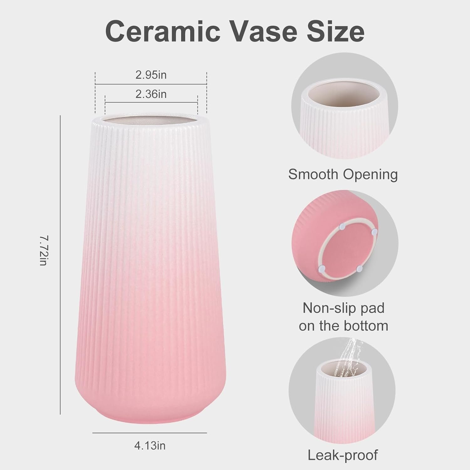 - Special Features: Anti-slip base, watertight, and wide mouth design, suitable for both fresh and dried flowers.