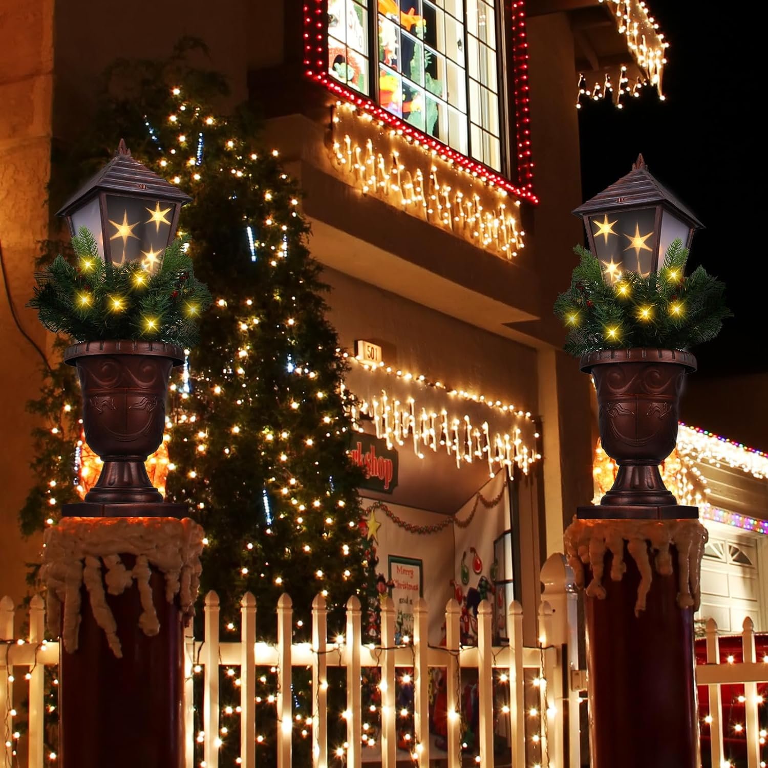 - Stunning Illumination: Each lamp post is adorned with 20 warm white LED lights, creating a cozy and festive atmosphere.