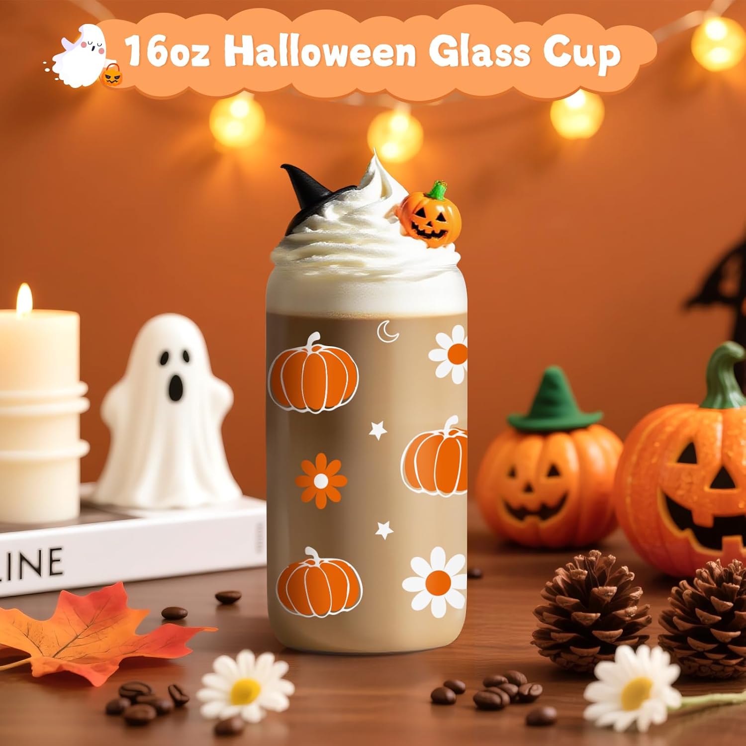 - Two 16oz Pumpkin Glass Cups that are perfect for sipping your favorite beverages while enjoying the Halloween festivities.