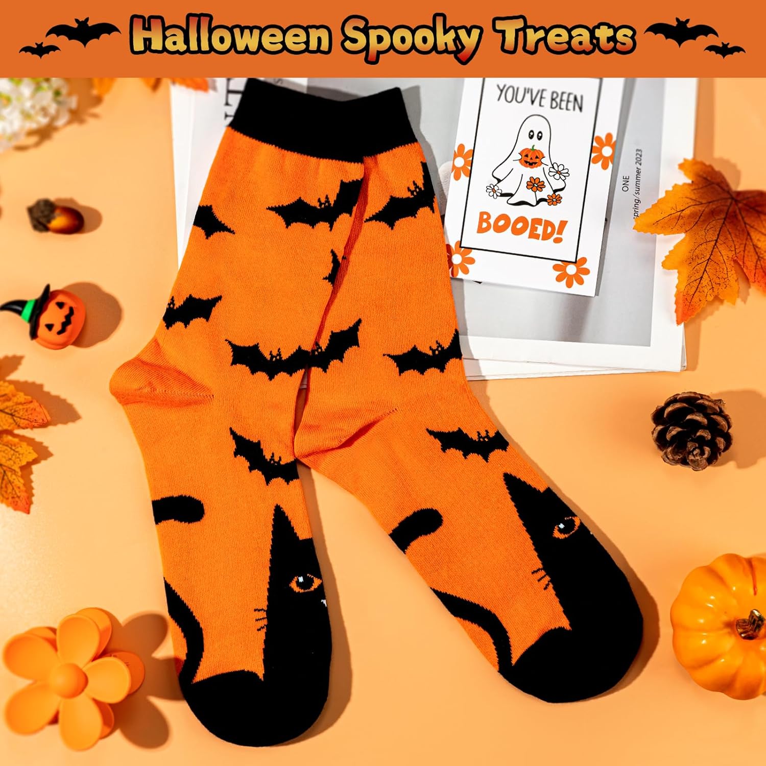 - π§‘ Includes a 16 oz pumpkin daisy glass cup, vanilla pumpkin-scented candle, festive bracelet, cozy socks, hair clip, scrunchie, and a “Youβve Been Booed” card.
