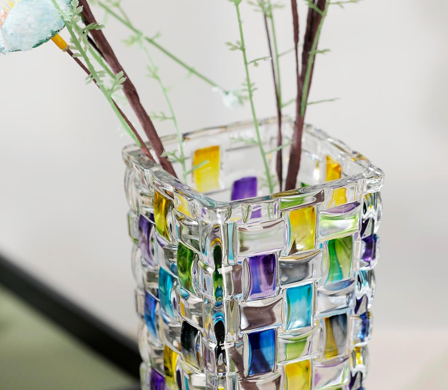 - Elegant Aesthetic: Made from high-quality, lead-free crystal with a hand-painted colorful woven finish for a vibrant, reflective look.