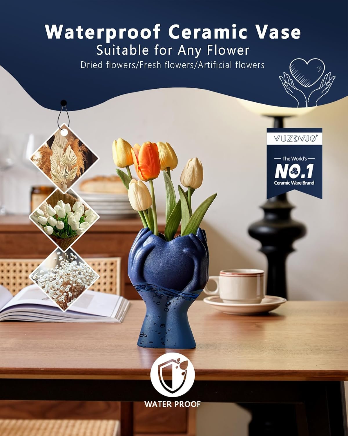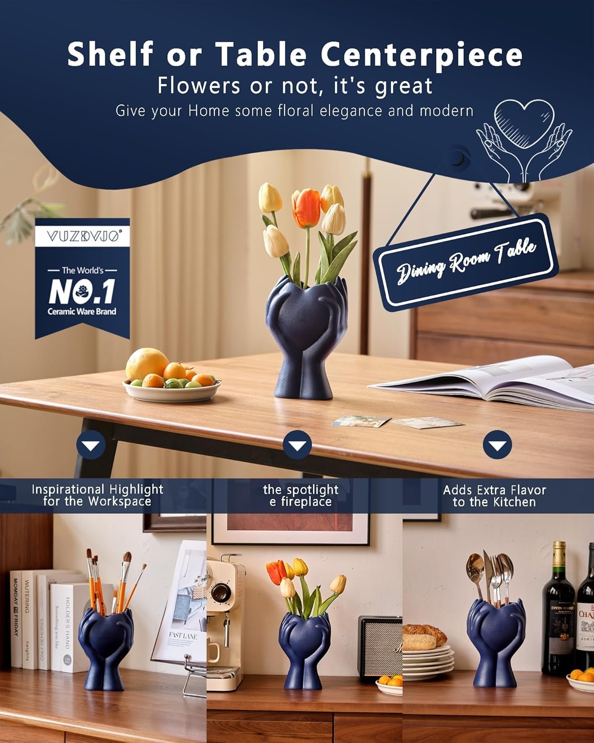 Elevate your decor with the 8″ Heart Hand Navy Blue Ceramic Vase—a stunning blend of elegance and symbolism! Perfect for any room in your home or office, this versatile vase adds a personal touch to any setting.