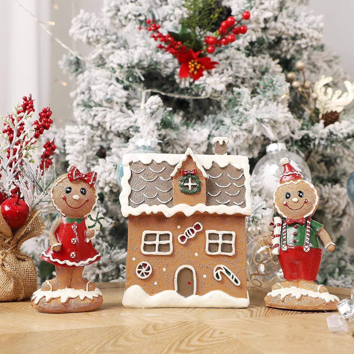 - Adorable Figurines: Accompanied by two cute gingerbread men, this set adds a playful touch to your festive display.
