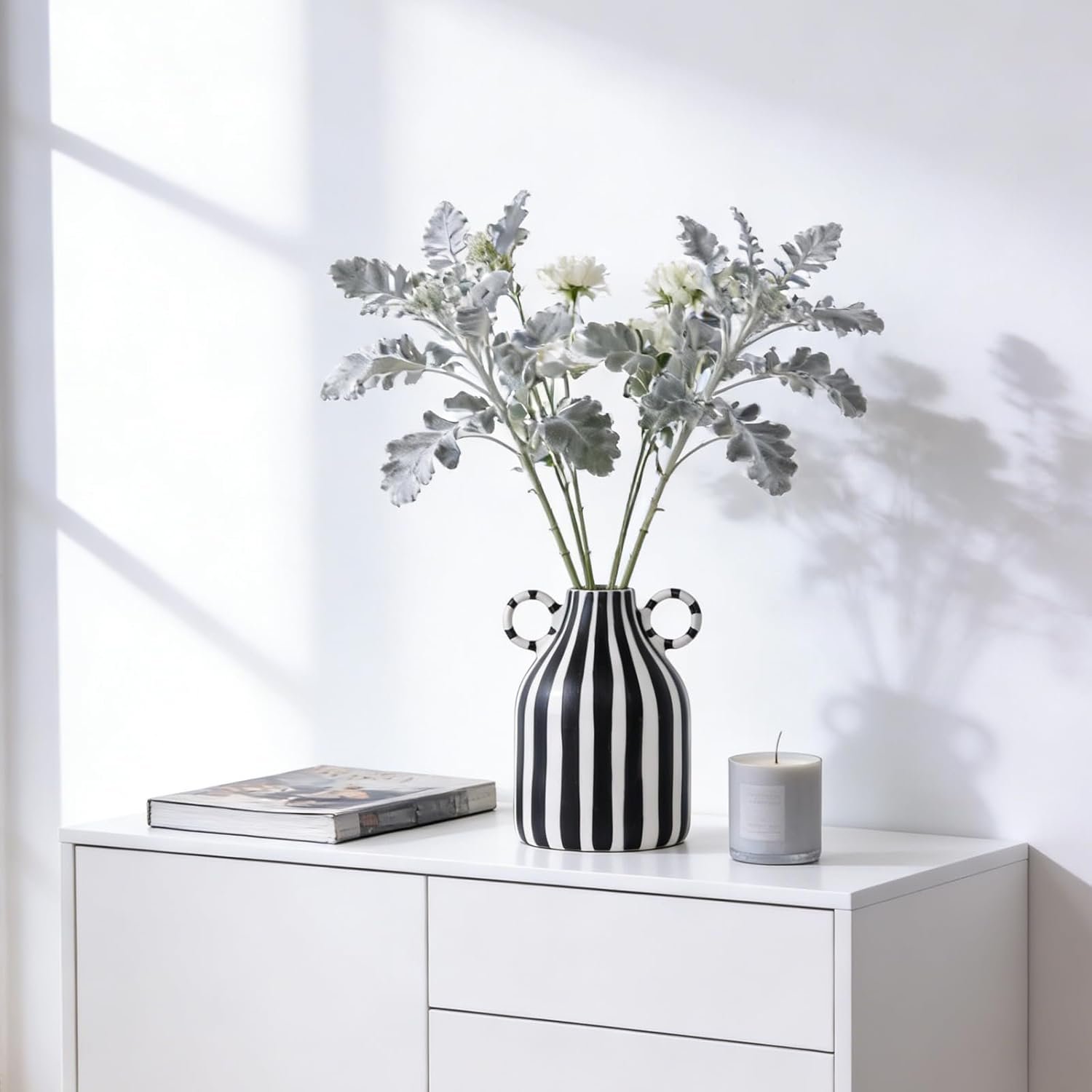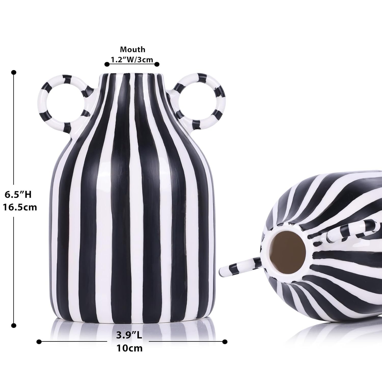 - Modern Minimalist Design: Hand-painted black and white stripes on a 6.5″ ceramic vase add artisan sophistication to any space.
