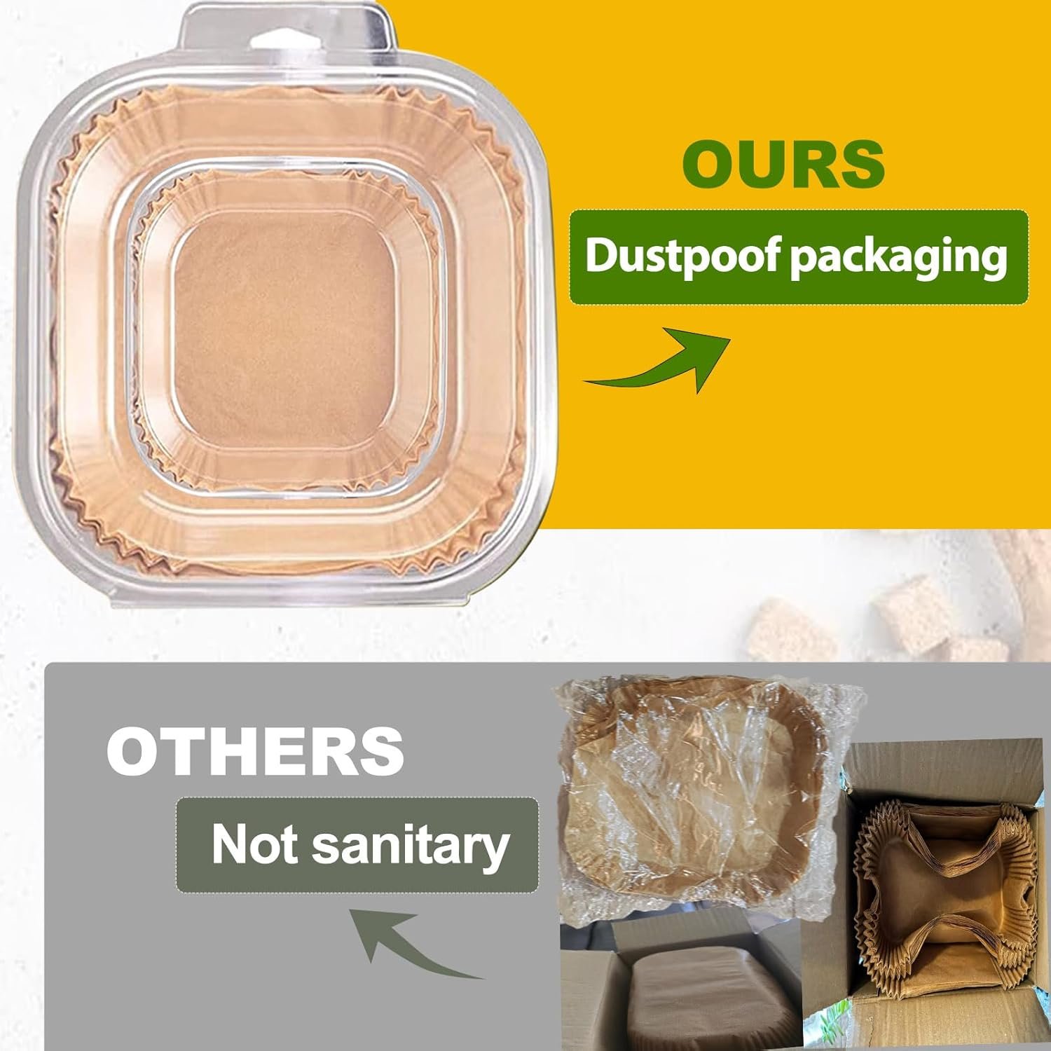 - User-Friendly: Square bowl shape eliminates the need for tearing, folding, or cutting; simply place it in the fryer.