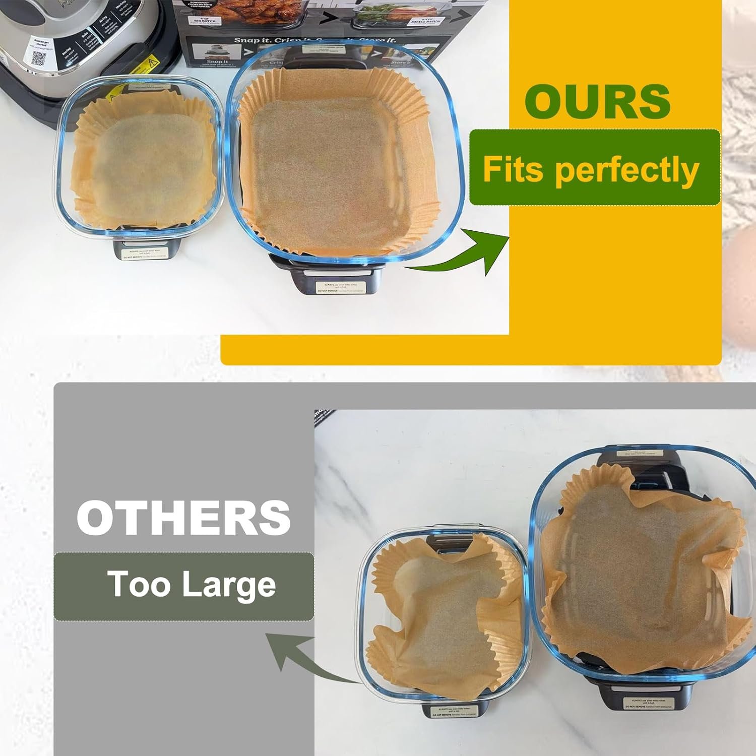 - Quantity: Includes 125 large liners (5.5×5.5 inches) for 4-QT and 125 small liners (7.5×7.5 inches) for 6-cup containers.