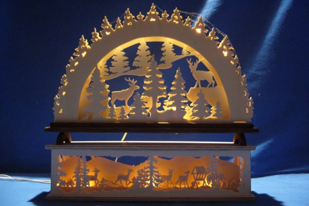 - Features a stylish base/sockelbank designed for Schwibbogen decorations