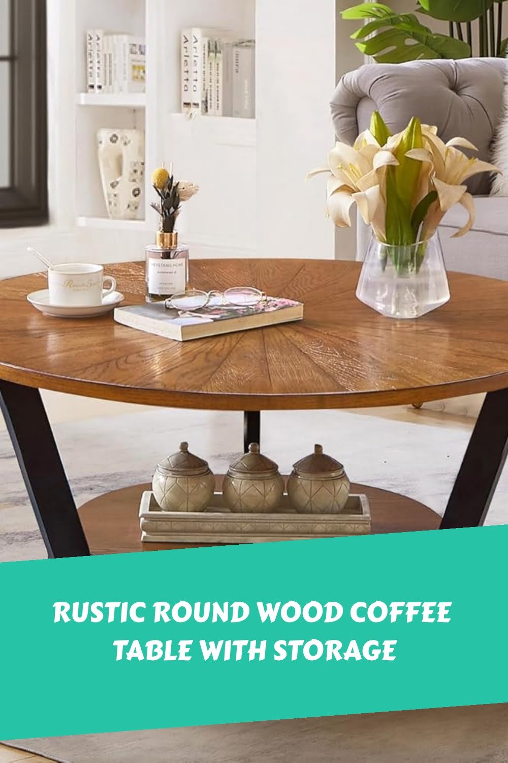 Rustic Round Wood Coffee Table with Storage