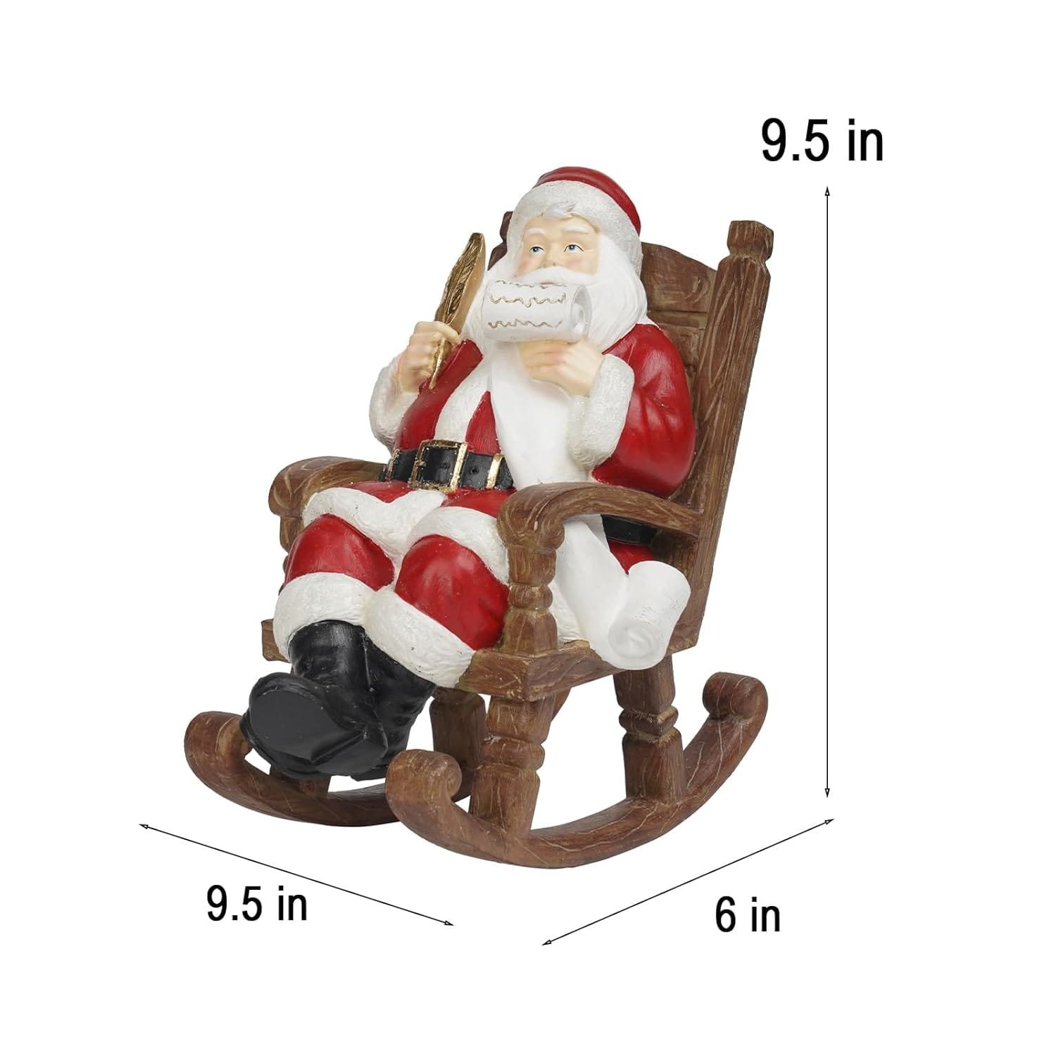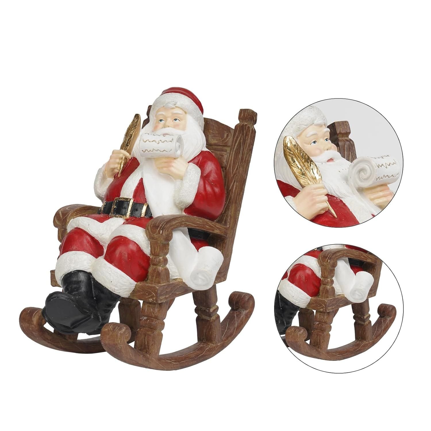 - Traditional Santa decoration featuring Santa sitting on a rocking chair, ideal for Christmas celebrations.
