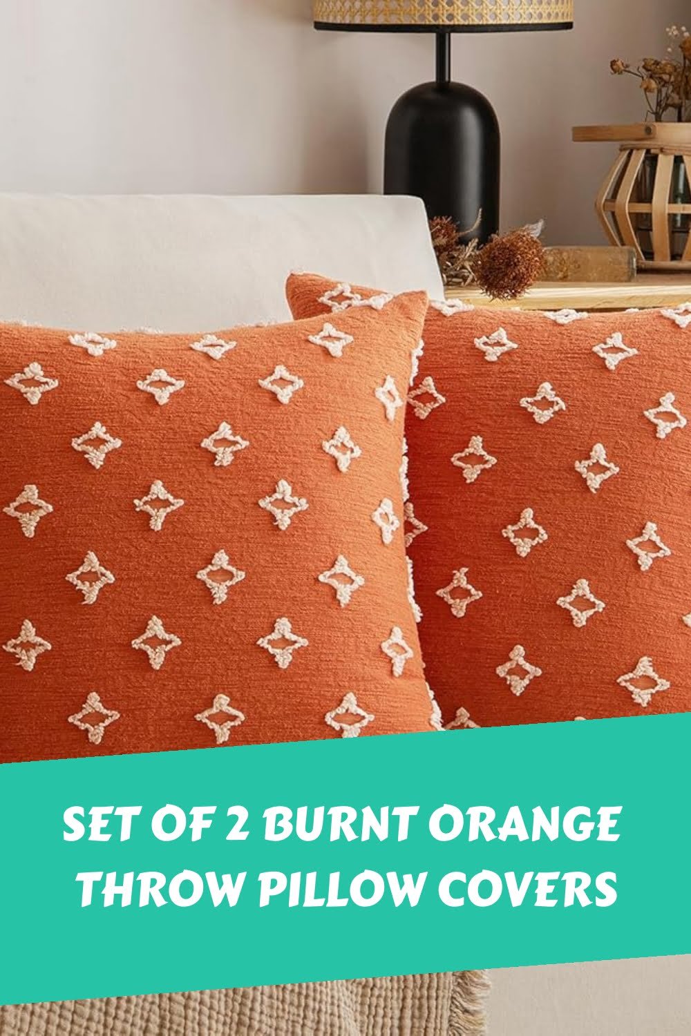 Elevate your home decor with the EMEMA Fall Burnt Orange Decorative Throw Pillow Covers. Crafted with a stylish rhombic jacquard pattern, these pillowcases are the perfect addition to any couch, sofa, or bed. Transform your living room or bedroom into a cozy autumn retreat with this set of two, featuring a warm and inviting burnt orange hue.