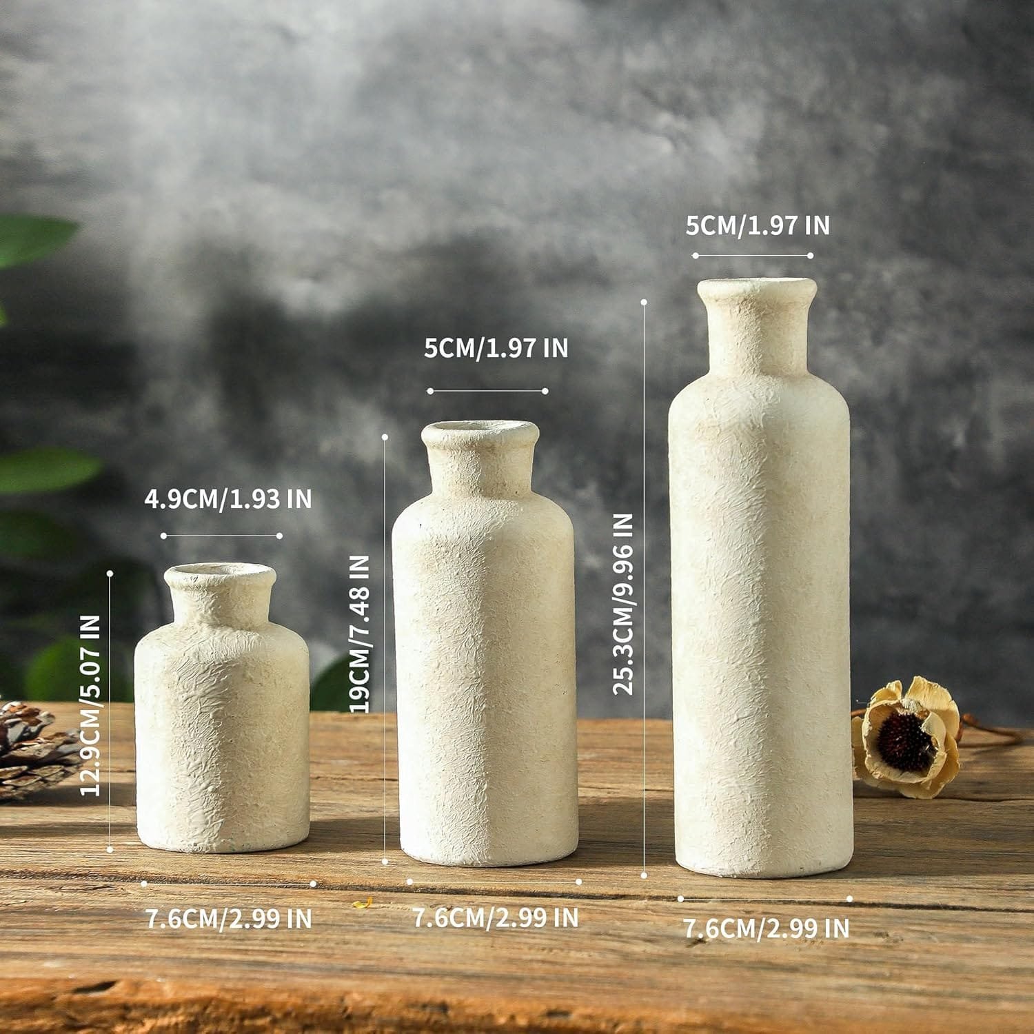 - Versatile Home Decor: Set of 3 whitewashed ceramic vases suitable for fresh or artificial flowers, perfect for various home decor styles.
