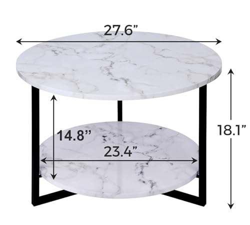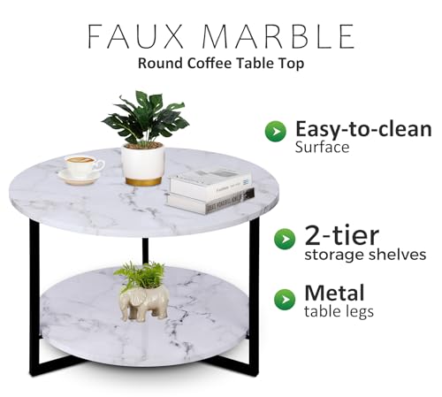 Stylish Round Faux Marble Coffee Table with Shelf for Living Room