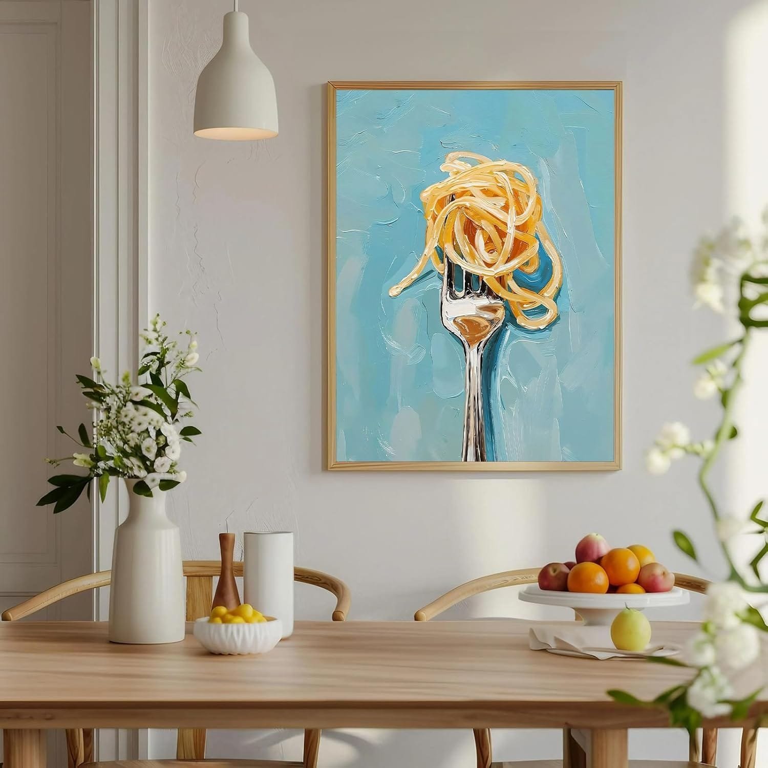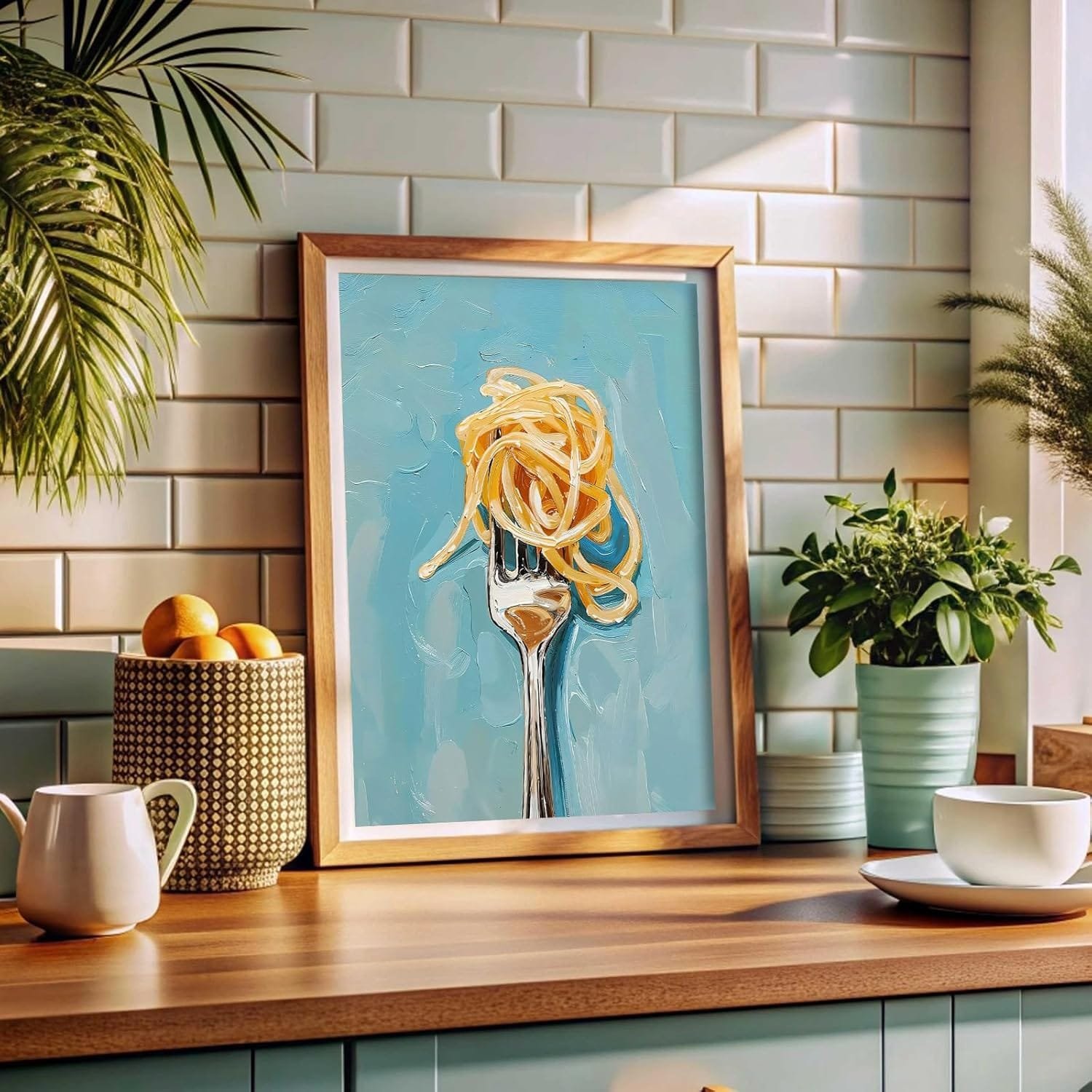 Transform your kitchen into a vibrant masterpiece with our Vintage Aesthetic Pasta and Fork Prints. Order yours today and let your walls do the talking!