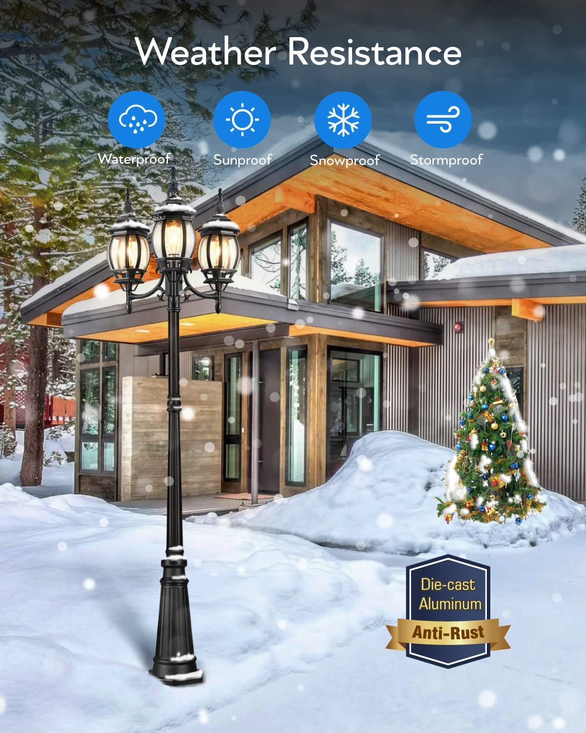 VIANIS 3-Head Waterproof Outdoor Lamp Post