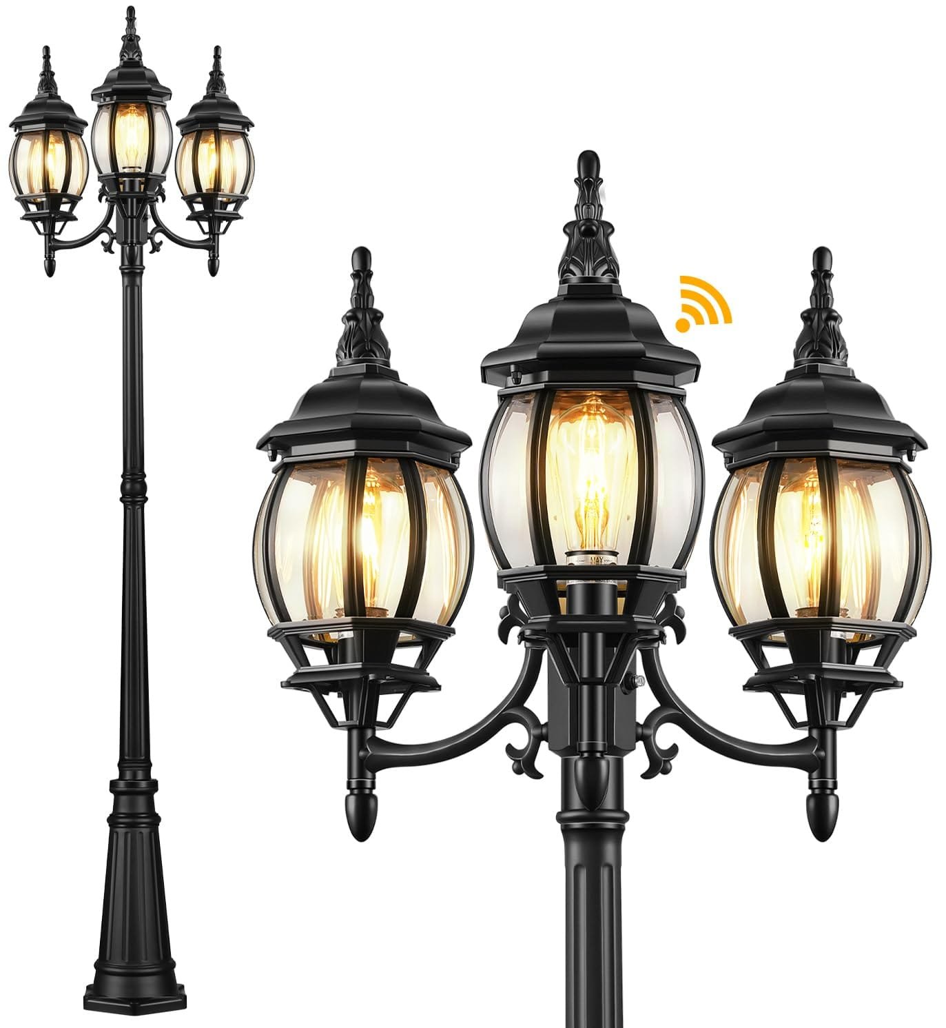 Illuminate your outdoor spaces with the VIANIS Lamp Posts Outdoor Lighting. Designed to enhance the beauty and security of your backyard or garden, this classic 3-head street light combines style, functionality, and durability.
