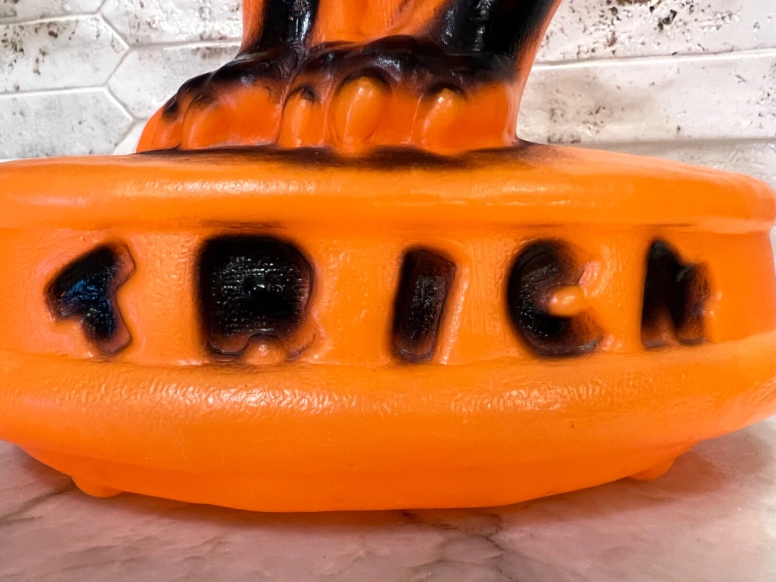 This vintage blow mold is in good used condition. While the colors remain bright and vibrant, there is some wear to the black finish on the cat, enhancing its authentic vintage appeal. Please refer to the photos for a closer look at its condition.