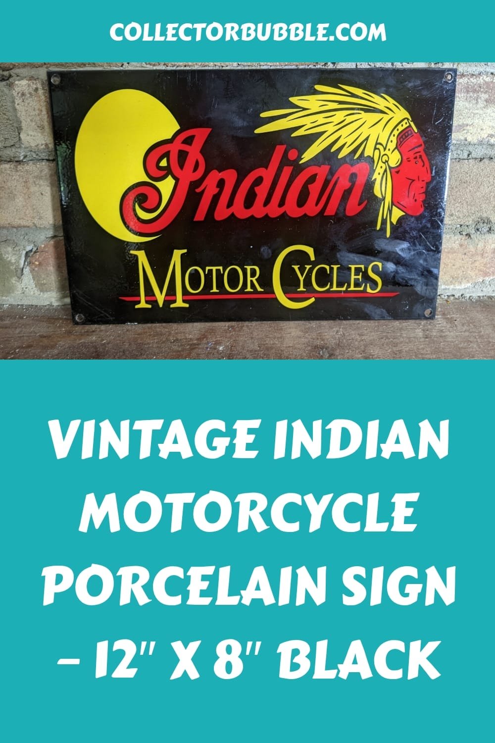 Vintage Indian Motorcycle Porcelain Sign – 12″ x 8″ Black