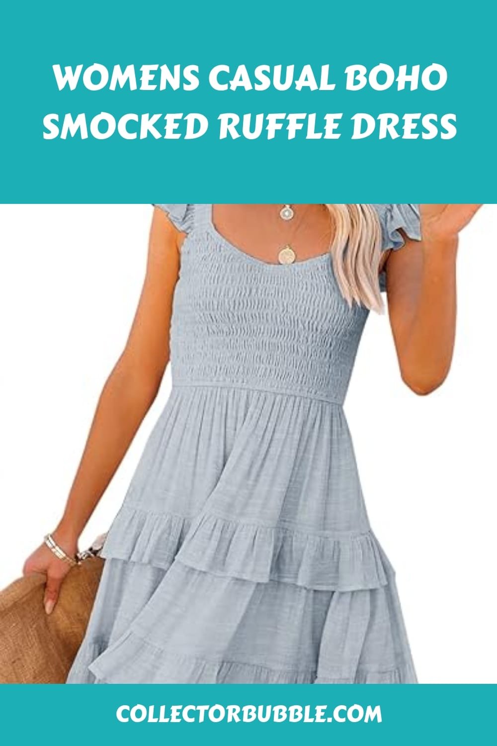 Womens Casual Boho Smocked Summer Ruffle Dress